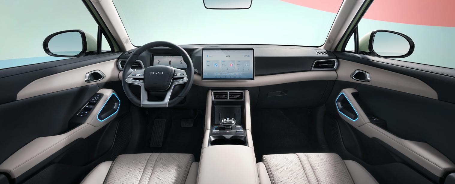 Mặc dù là mẫu xe đô thị cỡ nhỏ, nhưng không gian nội thất của BYD Atto 2 mang lại sự thoải mái bất ngờ. Ghế ngồi được thiết kế ôm lưng, sử dụng chất liệu da nhân tạo cao cấp (vegan leather) mang lại cảm giác sang trọng. Hàng ghế sau có trần xe cao, sàn phẳng hoàn toàn, giúp người ngồi không bị mỏi chân khi đi xa.